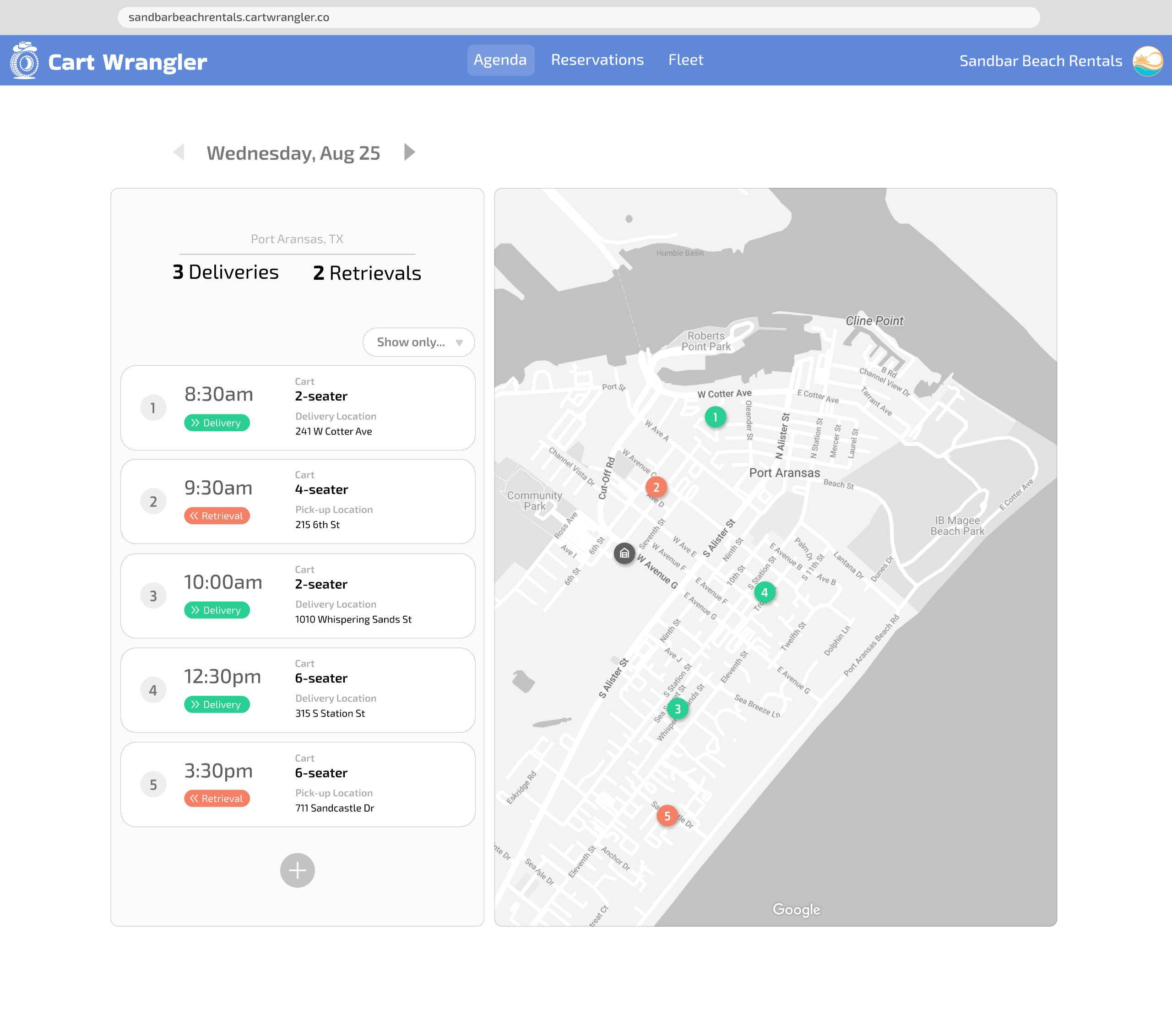 Cart Wrangler is headquartered in Port Aransas, TX, among a thriving coastal community with over 23 golf cart rental businesses -- more than any other coastal city in the country.No other beach town has us beat. It's the perfect place to build a rental platform like Cart Wrangler.